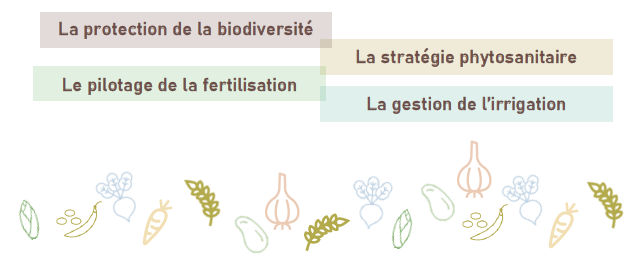 La Haute Valeur Environnementale (HVE) est une certification officielle qui permet aux agriculteurs d’évaluer, améliorer et valoriser leurs pratiques vis-à-vis de l’environnement. Elle s’applique à l’échelle de l’ensemble de l’exploitation avec 3 niveaux de progression et 4 thématiques de suivi :