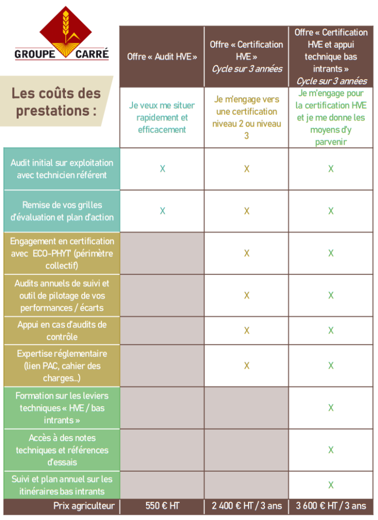 Le Groupe Carré, partenaire et cofondateur de l’association ECO-PHYT’ vous accompagne dans la certification HVE de votre exploitation :